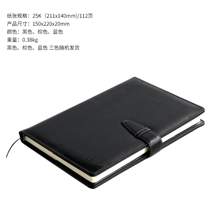 - 商品名称:得力(deli) 3335 25K/120页简约扣带皮面本/记事本笔记本子 黑色