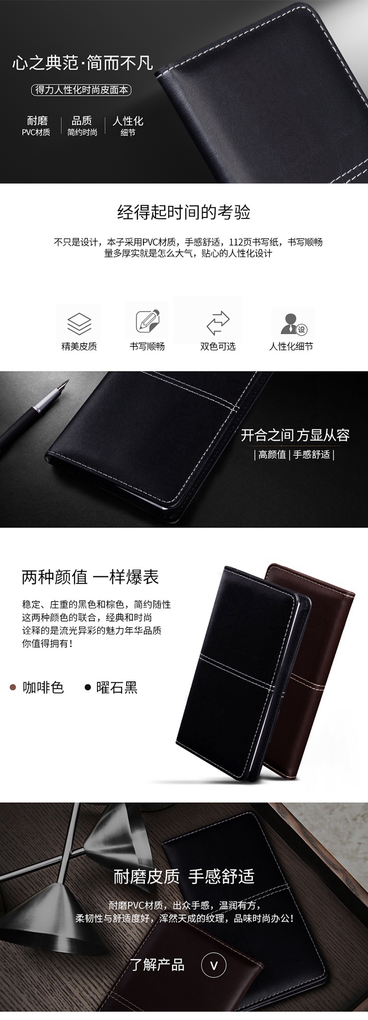 - 商品名称:得力(deli) 3325 48K/112页商务皮面本记事本笔记本子 黑