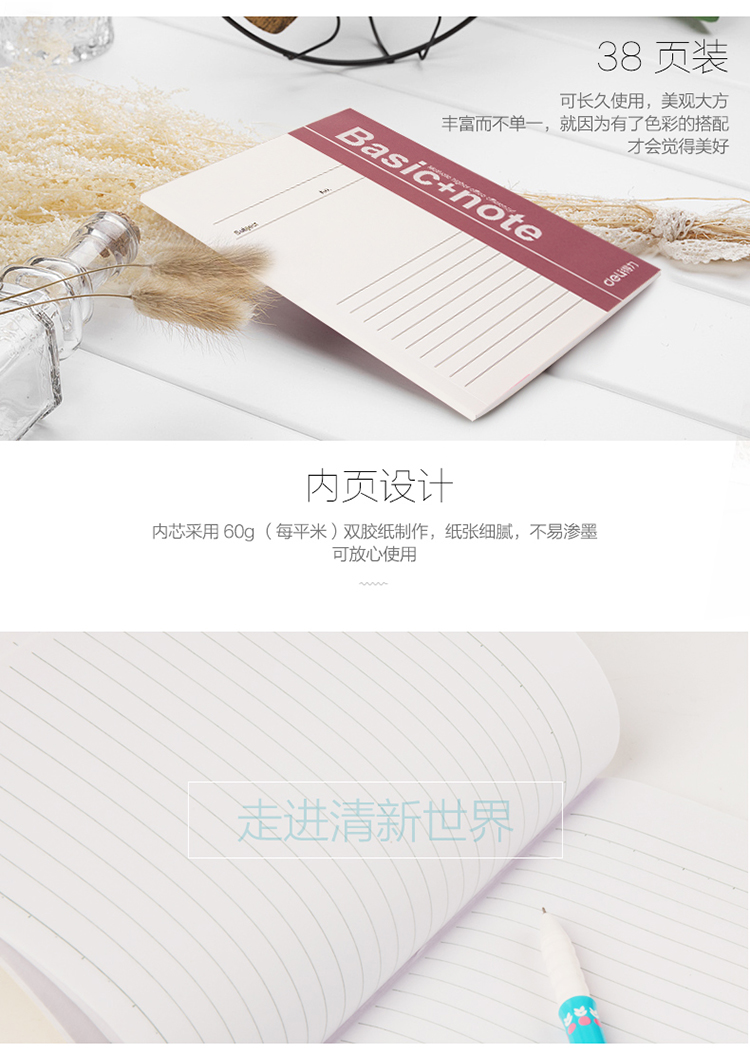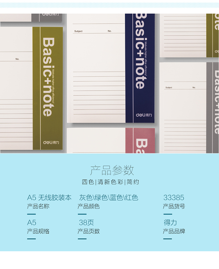 商品名称:得力(deli) 33385 A5/38页 无线装订软抄本办公记事本 蓝色