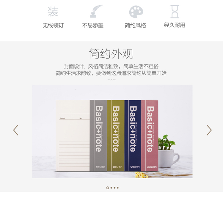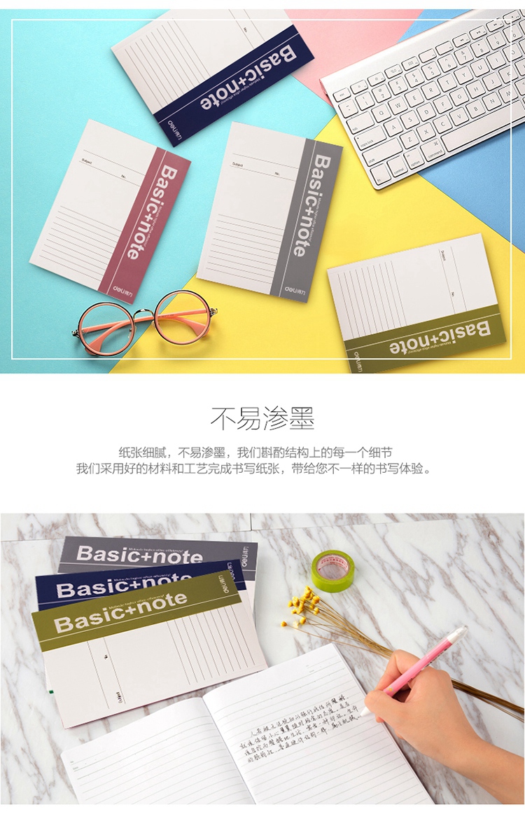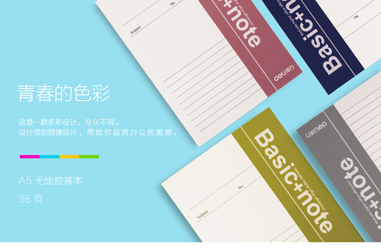 得力(deli) 33385 A5/38页 无线装订软抄本办公记事本 蓝色