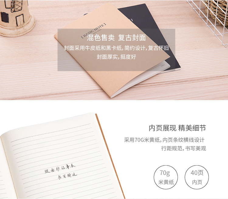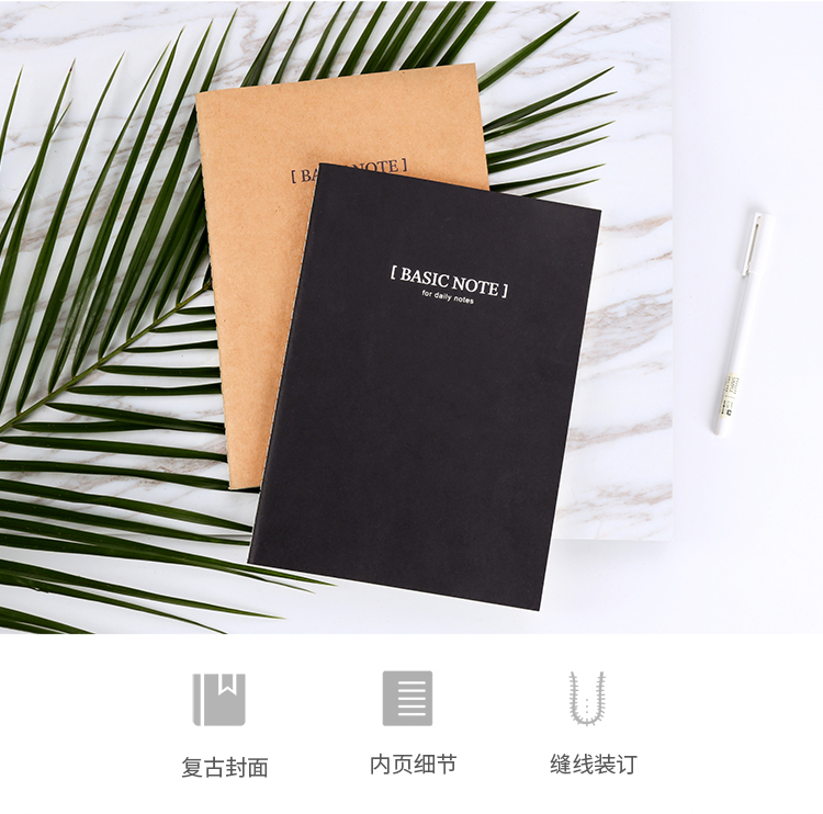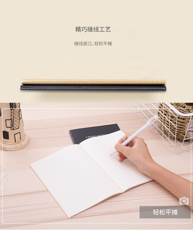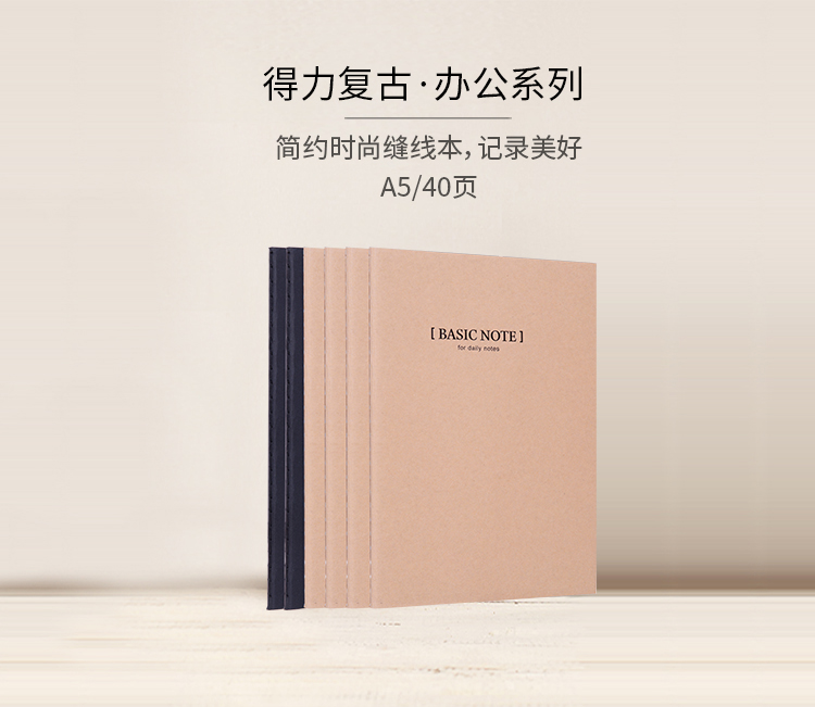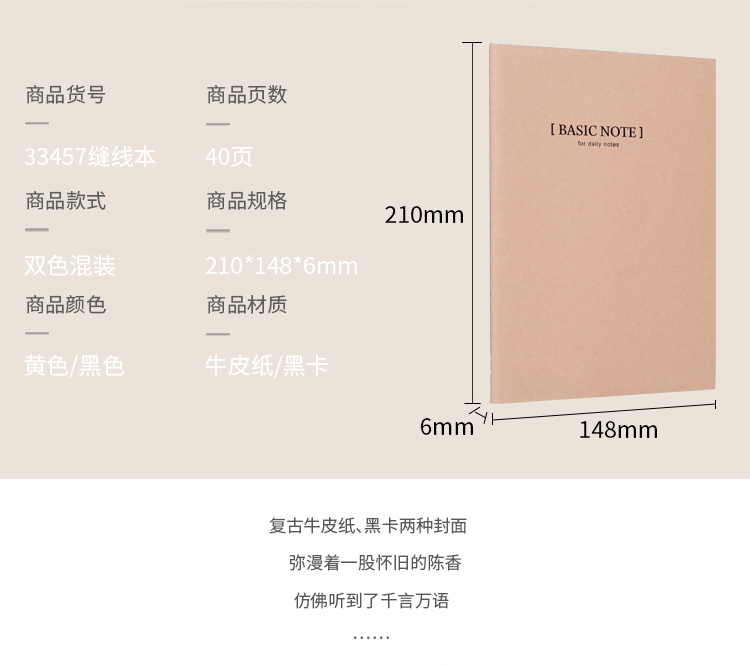 商品名称:得力(deli) 33457 A5/40页牛皮纸缝线软抄本办公记事本 黑色