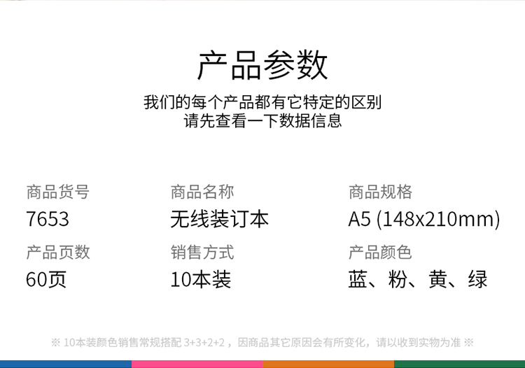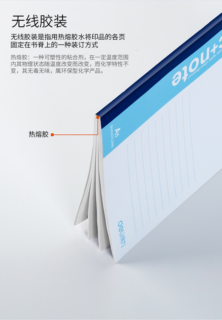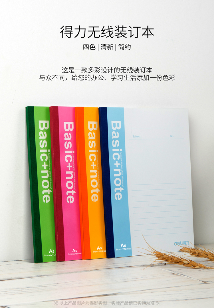 商品名称:得力(deli) 7653 A5/60页无线装订笔记本子工作笔记本 (计价单位:本)