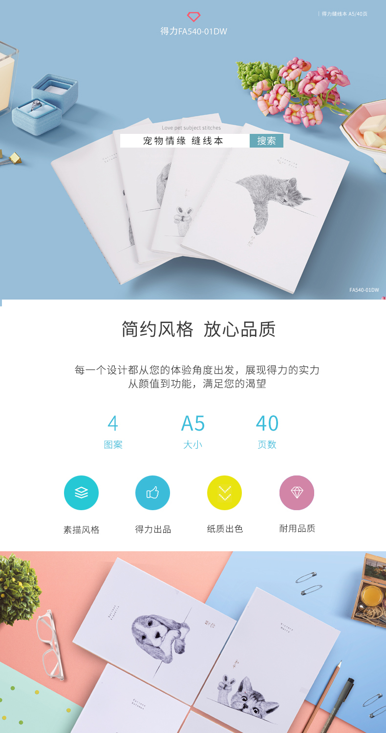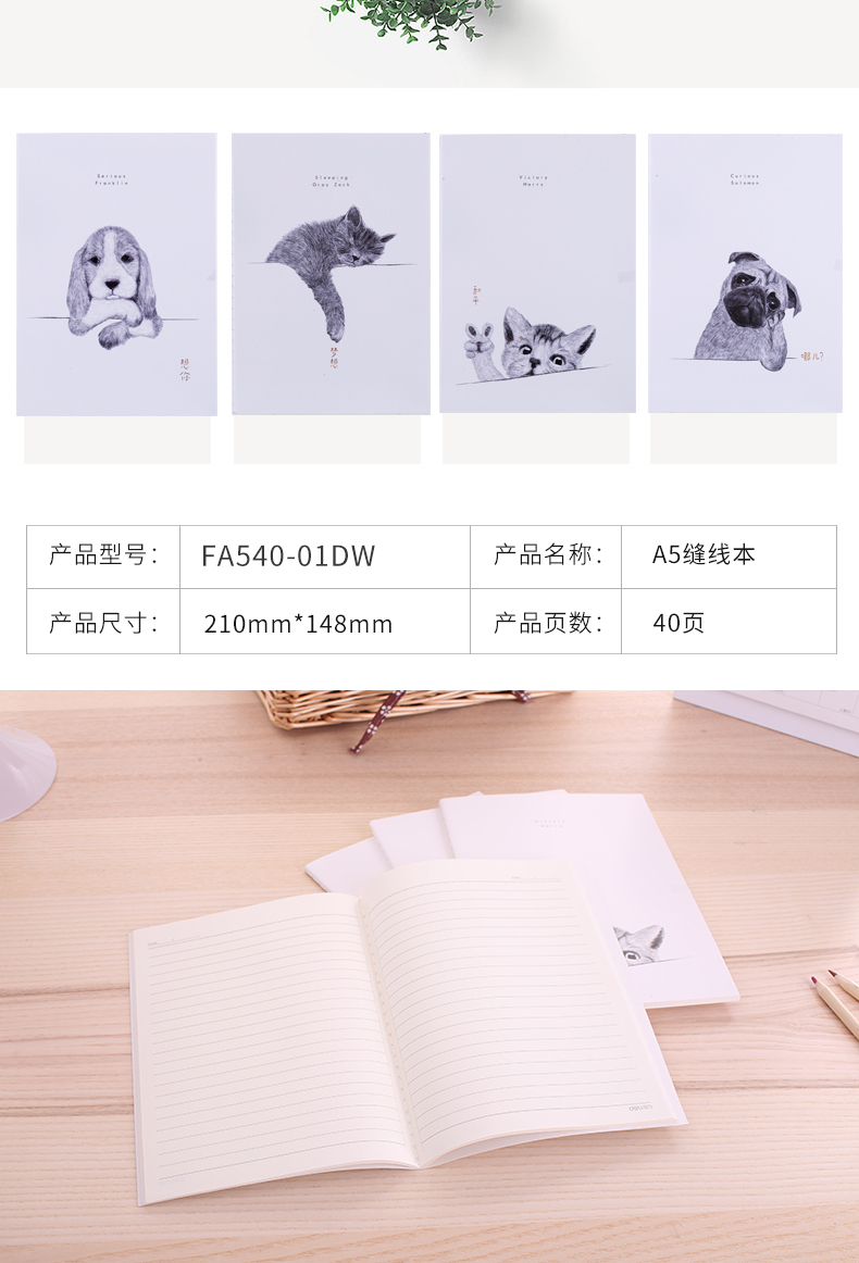 商品名称:得力(deli)FA540-01DW A5/40页 小清新创意学生笔记本 款式随机 (计价单位:本)