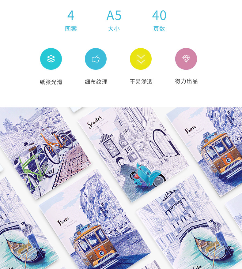 得力 FA540-29 A5/40张 记事本 缝线本 笔记本 款式随机 (计价单位:本)