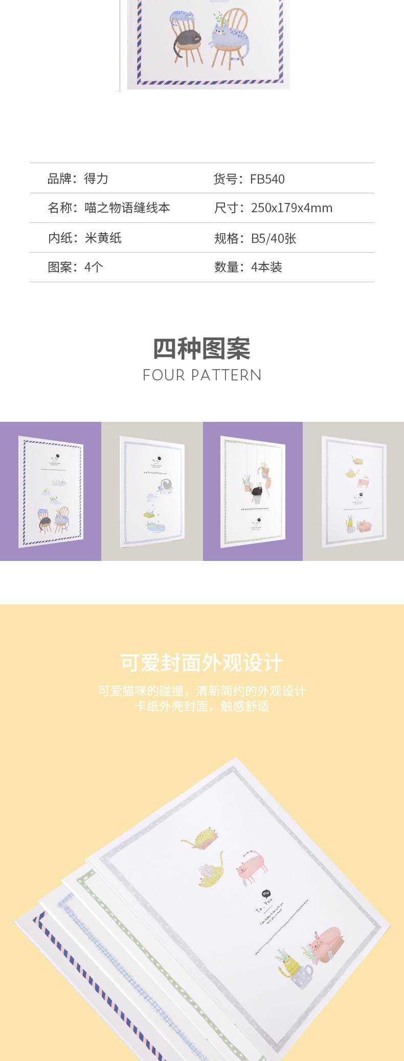 商品名称:得力(deli) FB540-4 喵之物语系列 缝线软抄本 B5/40页 款式随机