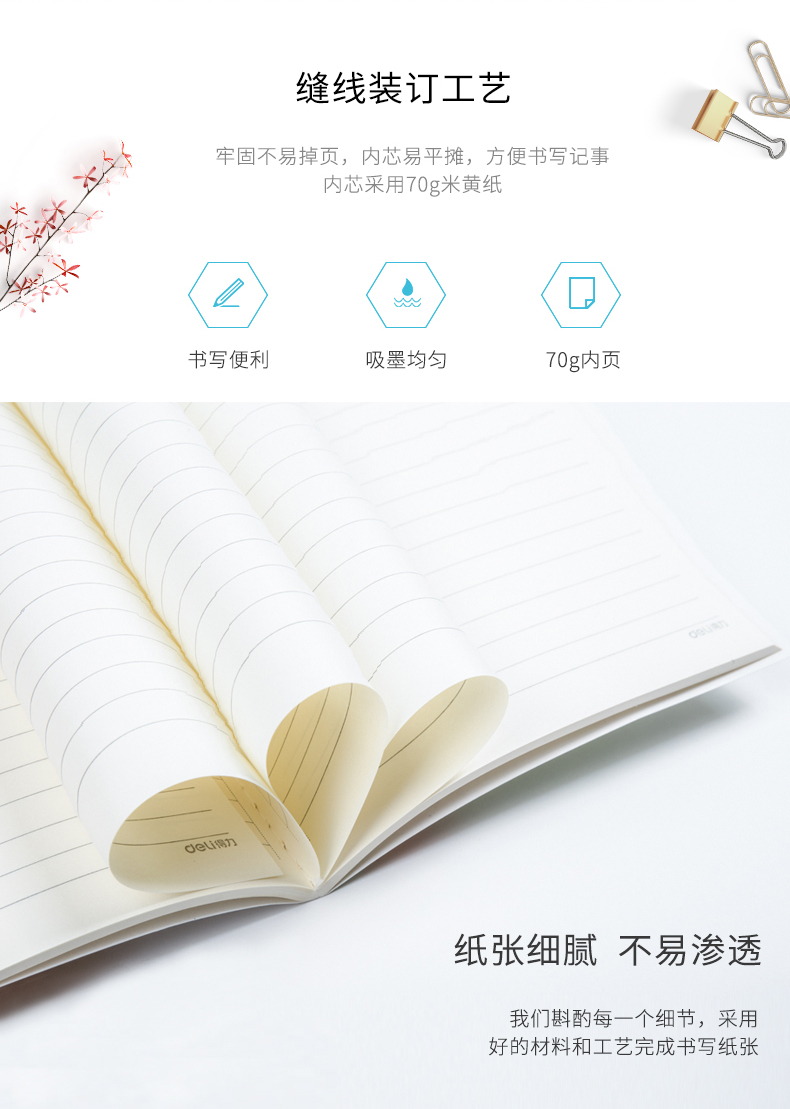 商品名称:得力 FB540-01DW B5印花线装记事本 40页软面抄 款式随机