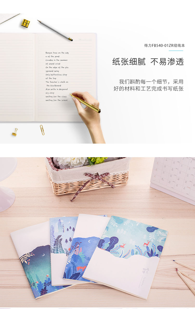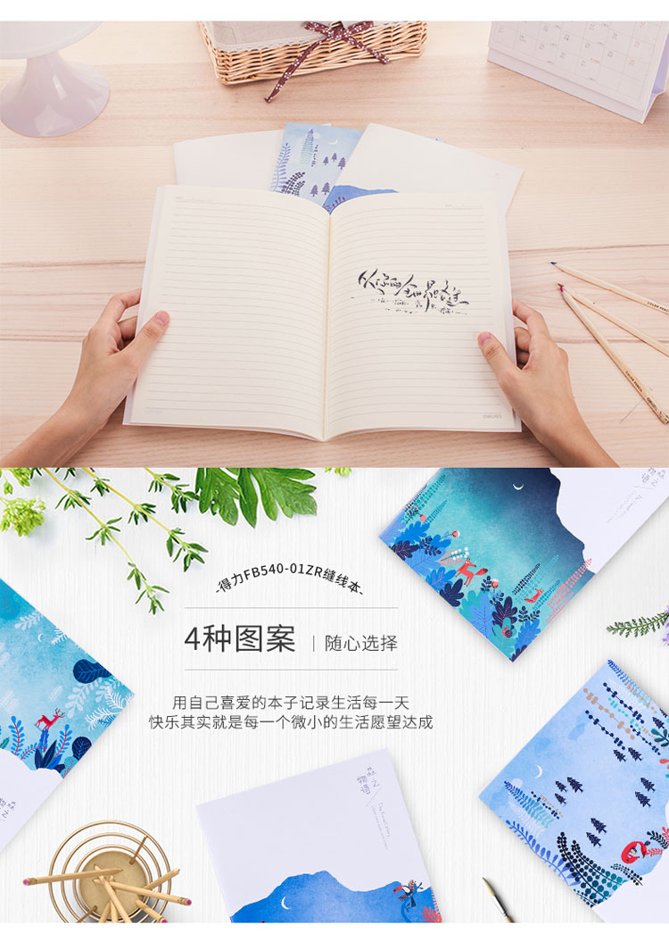 商品名称:得力 FB540-01ZR B5 缝线装订软面抄本 款式随机