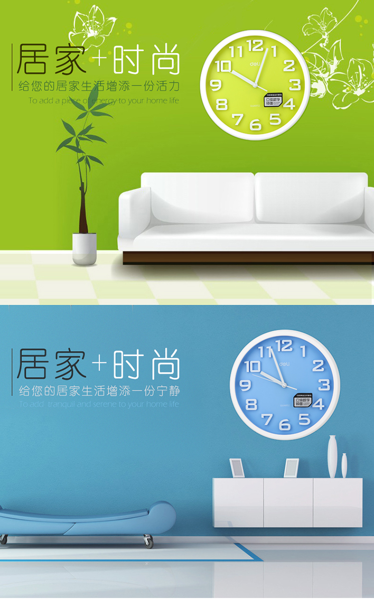 得力(deli) 8948 时尚炫彩办公家居挂钟 圆形