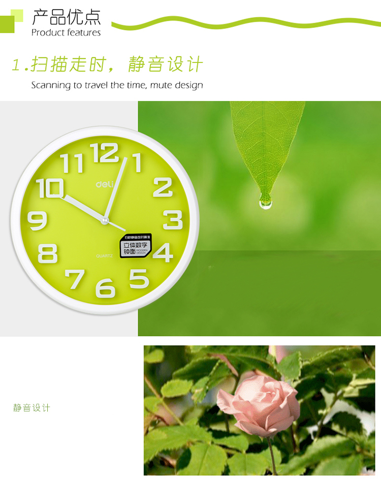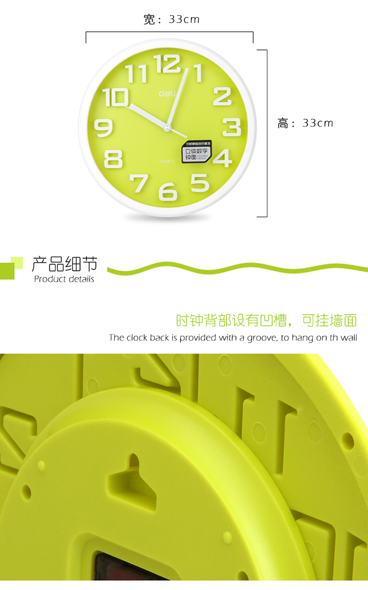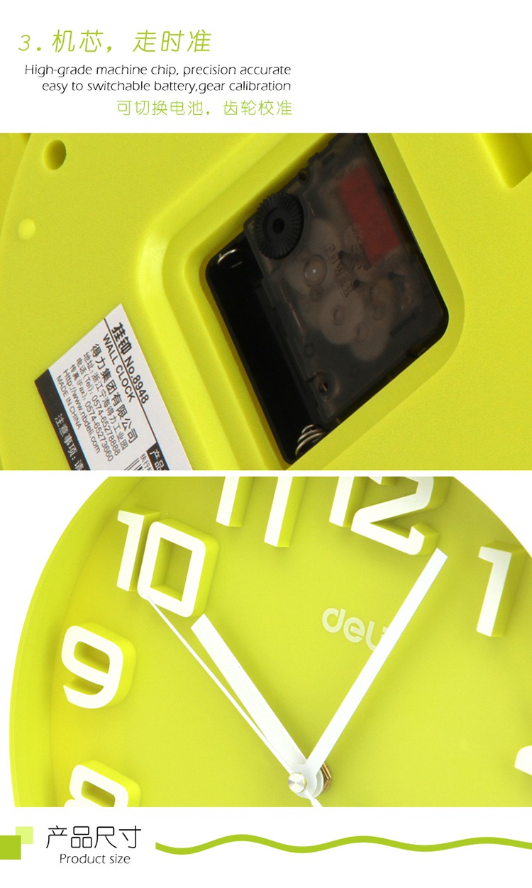 商品名称:得力(deli) 8948 时尚炫彩办公家居挂钟 圆形