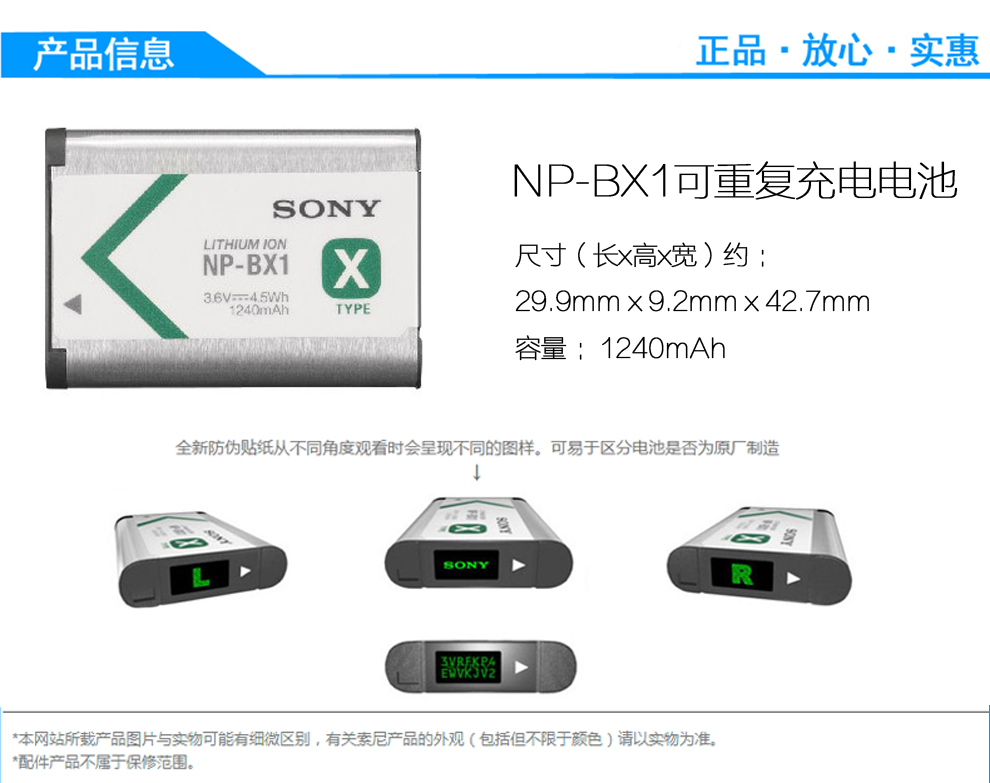 - 商品名称:索尼 NP-BX1 黑卡相机RX1RM2 RX100M5 PJ410 原装电池 ACC-TRBX 电池