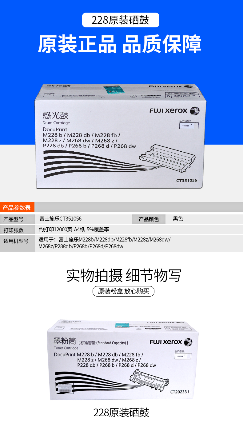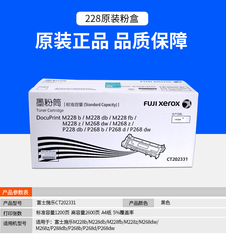商品名称:富士施乐(Fuji Xerox)CT202331 黑色墨粉筒 1200页打印量 适用于P/M228 P/M268系列 单只装