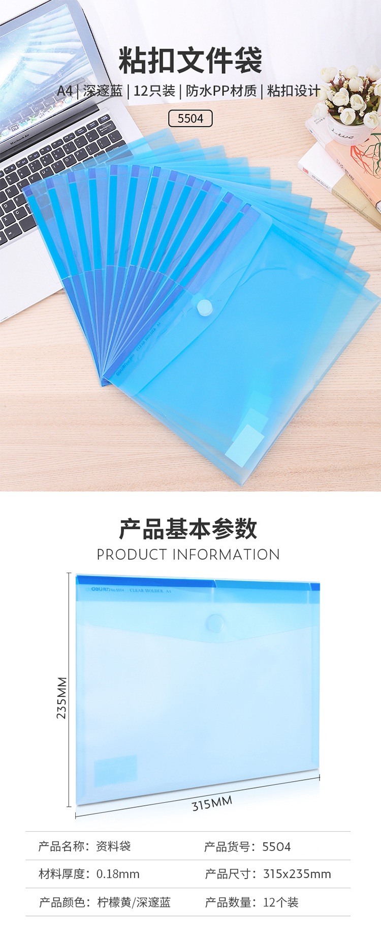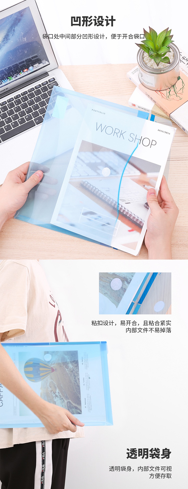 商品名称:得力 (deli) 5504 A4 透明粘扣文件袋 透明