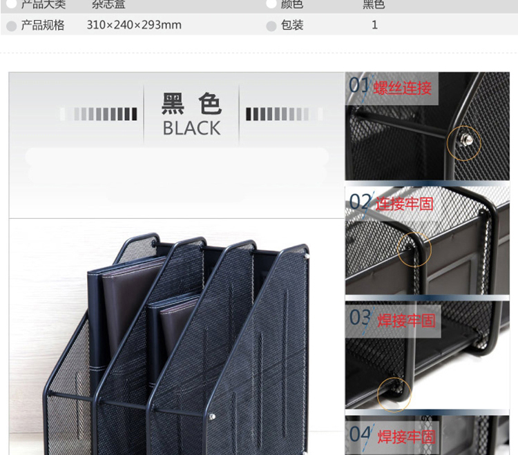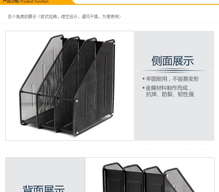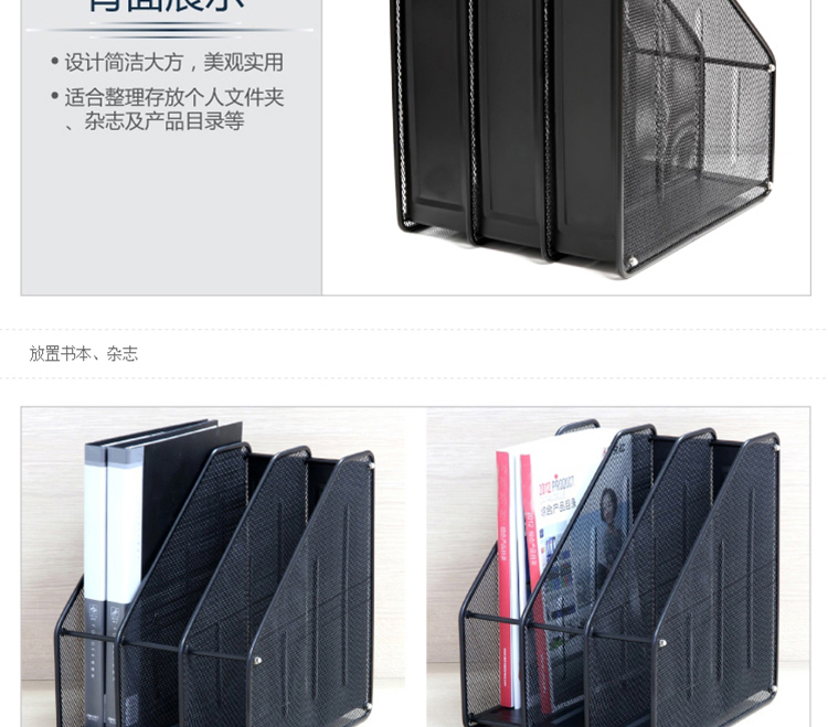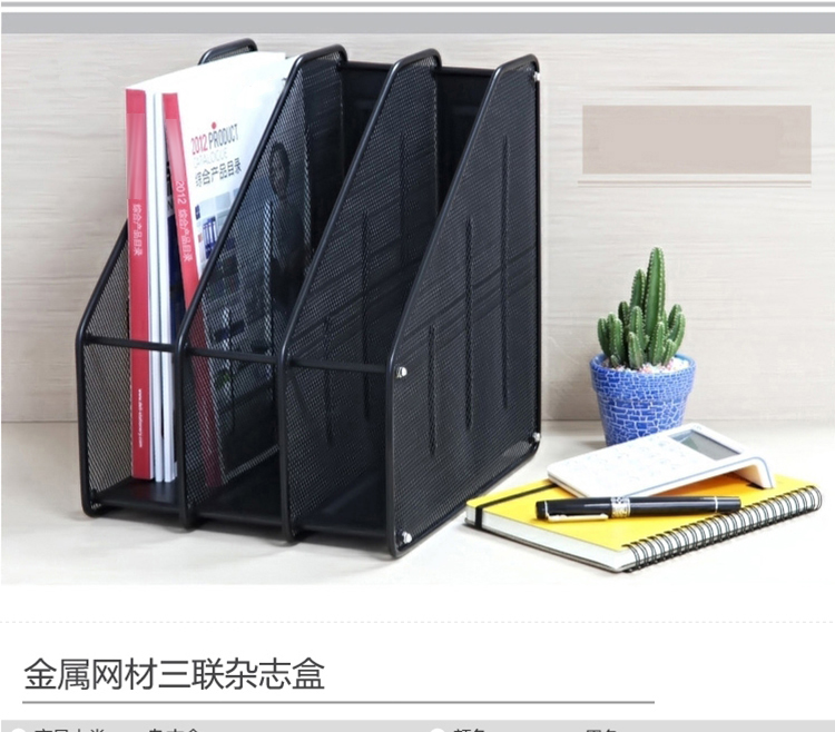 商品名称:三联 文件框 三栏金属文件框 铁网文件架 文件座 黑色