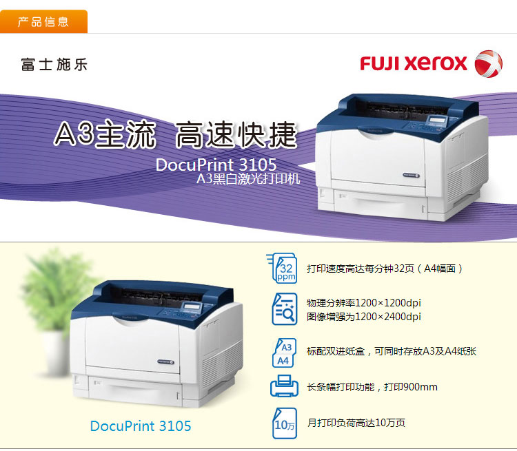 商品名称:富士施乐(Fuji Xerox) DP3105 黑白激光打印机