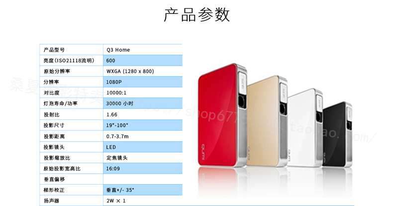 商品名称:丽讯(Vivitek)Q3 home 3D 办公商务便携式投影机