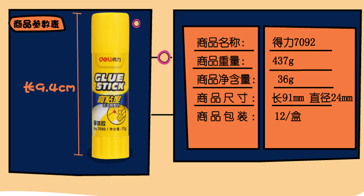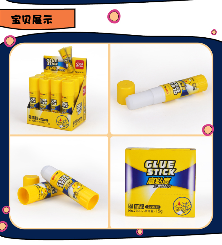 商品名称:得力(deli)7090 强粘性 PVP固体胶/固体胶胶棒15g 12支/盒