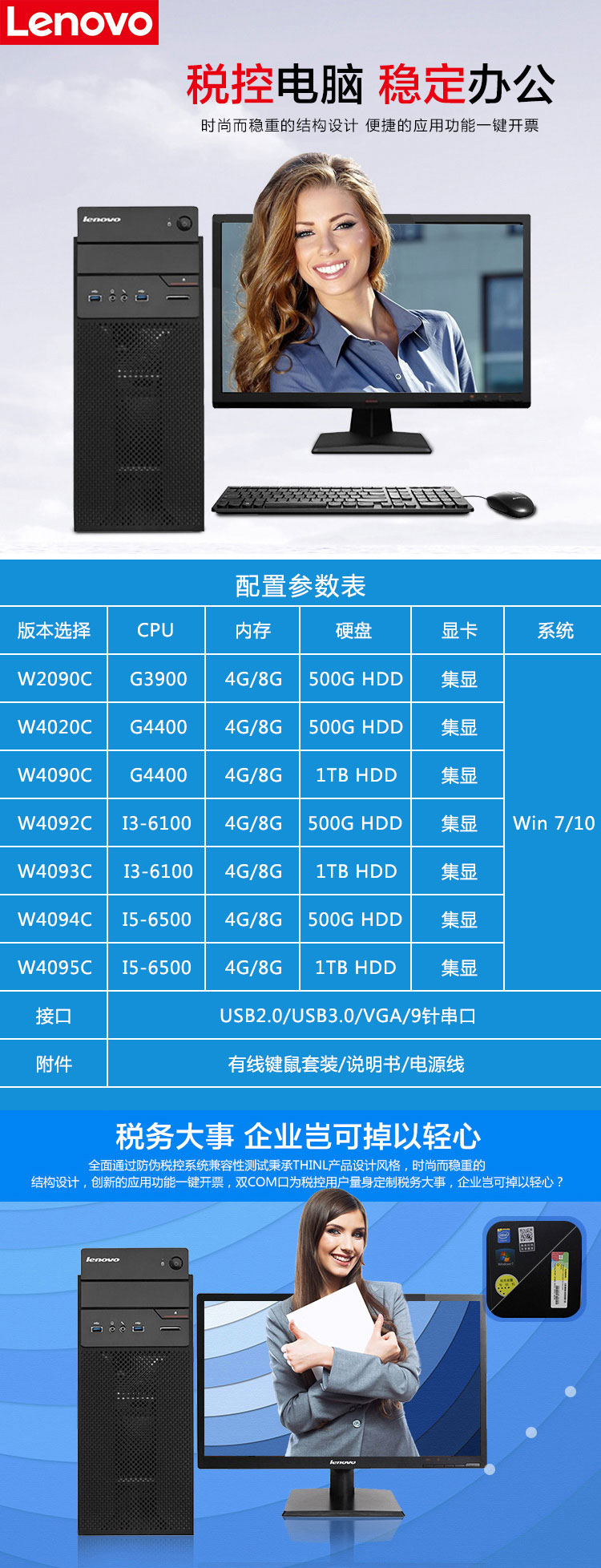 商品名称:联想(Lenovo) 扬天W4092C 台式电脑 I3-7100 8G 500G机械硬盘 集显 无光驱 Win10专业版 +19.5寸显示器