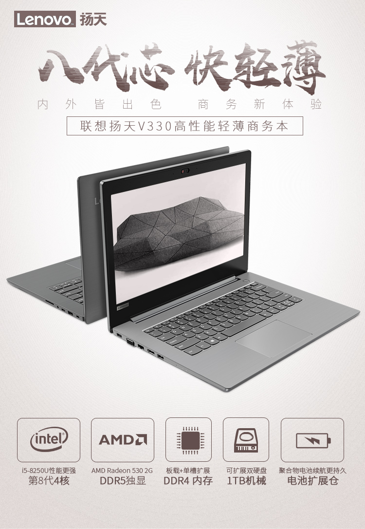 联想(Lenovo) V330 i5-8250U 8G内存 1TB硬盘 R5 2G独显15.6英寸笔记本电脑商用办公