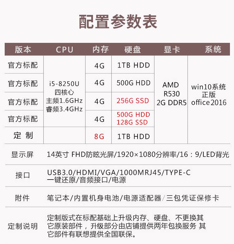 商品名称:联想(Lenovo) V330 i5-8250U 8G内存 1TB硬盘 R5 2G独显15.6英寸笔记本电脑商用办公