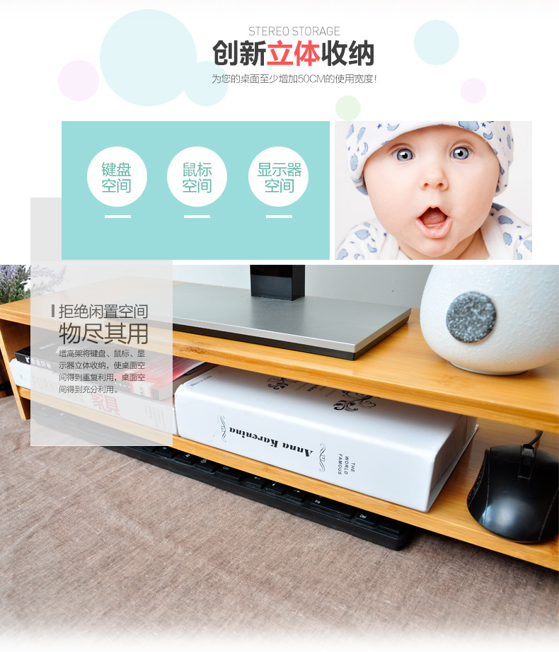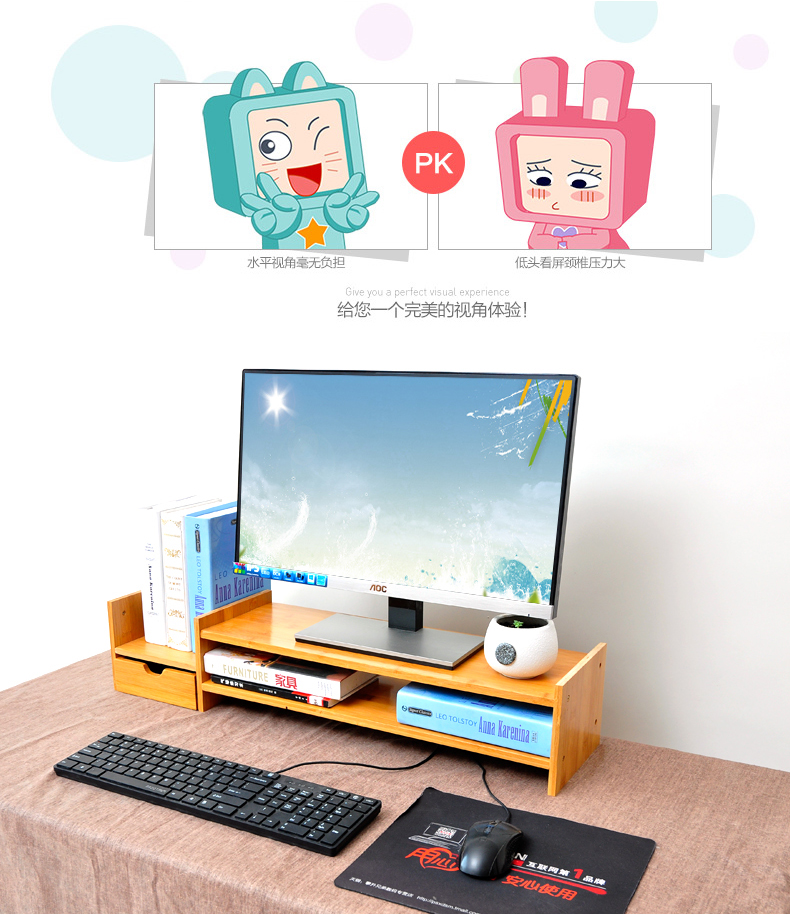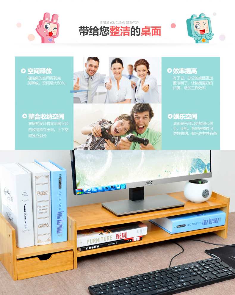 商品名称:竹庭 显示器增高架支架 69*19*15(带抽屉带隔板)