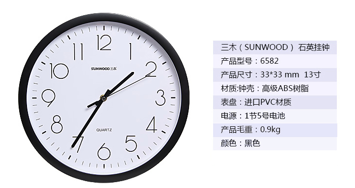 商品名称:三木 6582 13寸 简约时尚静音 挂钟