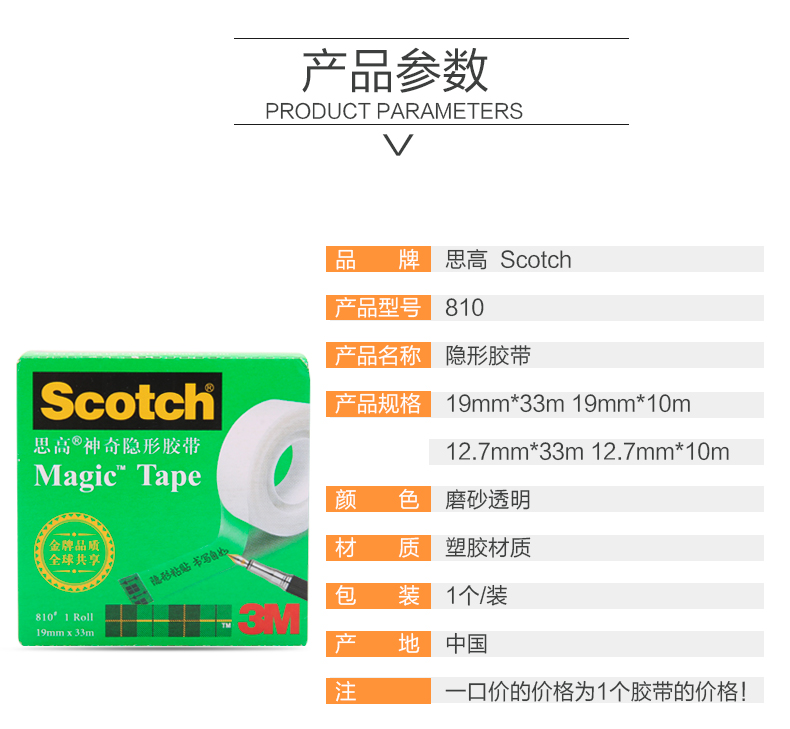 商品名称:思高(Scotch) 810 隐形胶带 19mm*33m
