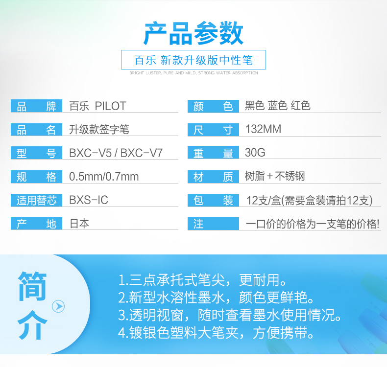 - 商品名称:百乐(PILOT) BXC-V5 针管走珠笔 0.5mm 红色