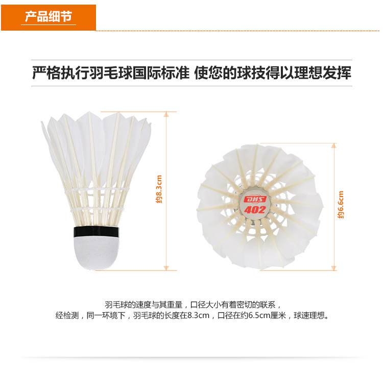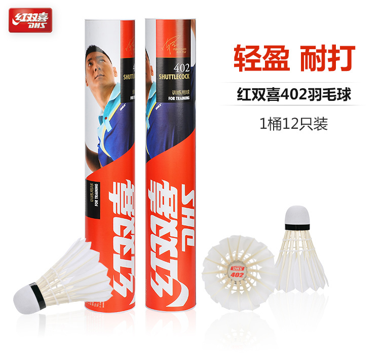 - 商品名称:红双喜(DHS) 402 羽毛球耐打训练羽球 12个装