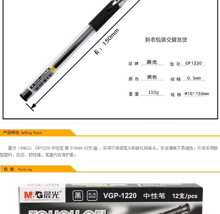 - 商品名称:晨光(M&G) VGP1220 中性笔 0.5mm 12支/盒(墨蓝色)