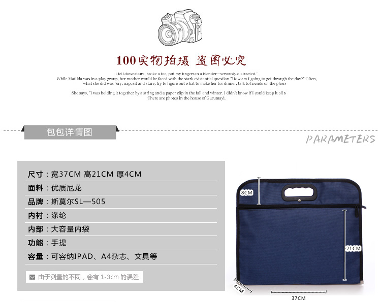 - 商品名称:斯莫尔 SL-505 尼龙面料文件袋 37*21*4cm 深蓝色