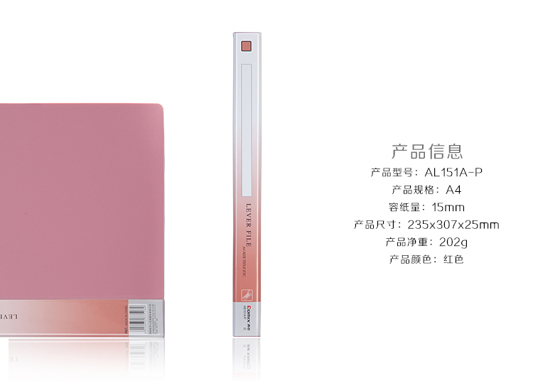 商品名称:齐心(COMIX) AL151A-P A4 长押夹 红色 20个/箱