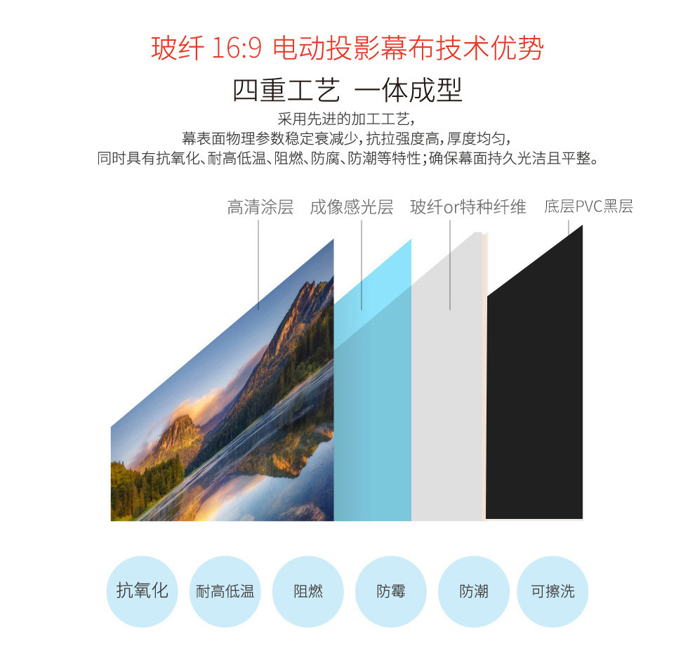 商品名称:红叶 电动挂幕 100英寸 16:10玻珠