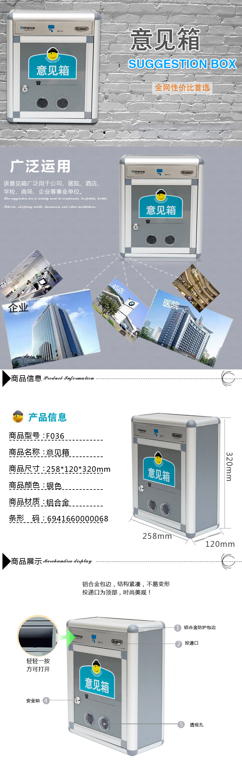 - 商品名称:金隆兴(Glosen) F036 意见箱 263*132*330mm