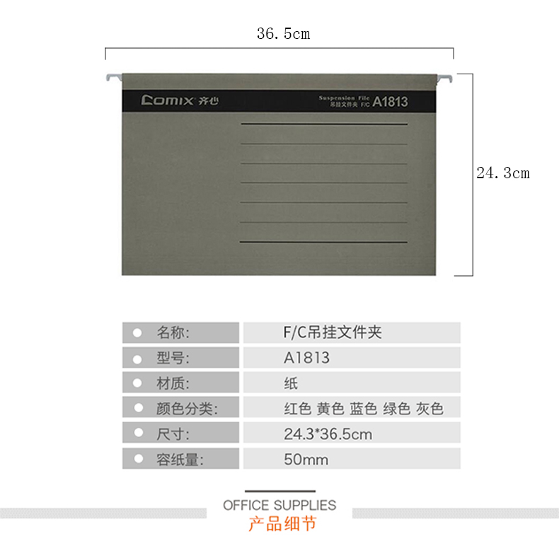 - 商品名称:齐心(COMIX) A1813 吊挂文件夹 带挂钩 A4 25个/盒 (浅黄色)