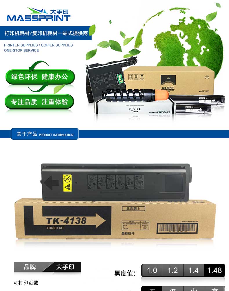 商品名称:大手印 复印机粉盒 TK4138 京瓷TK4138 适用kyocera TASKalfa 2210 2211