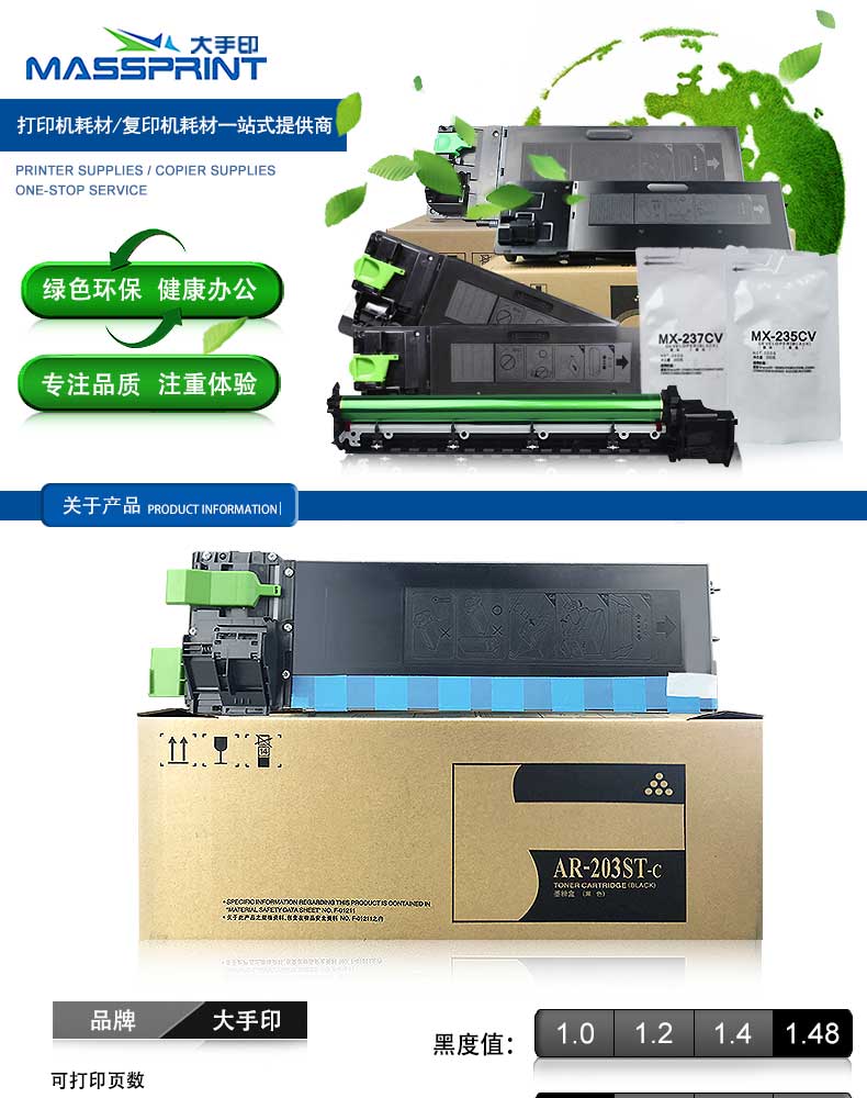 商品名称:大手印 复印机高容粉盒 AR-203ST-C 夏普AR-203ST-C 适用AR163N/201N/206N/1818/1820/2616/2618/2620/2718/2718N/2818/2820/2820N/2918/2920/2921/M160/M205/M209/209