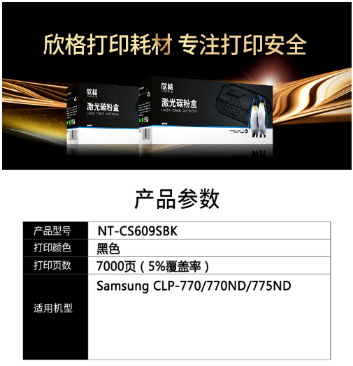 - 商品名称:欣格 硒鼓 NT-CS609SBK 黑色 三星CLK609S 适用Samsung CLP-770/770ND/775ND