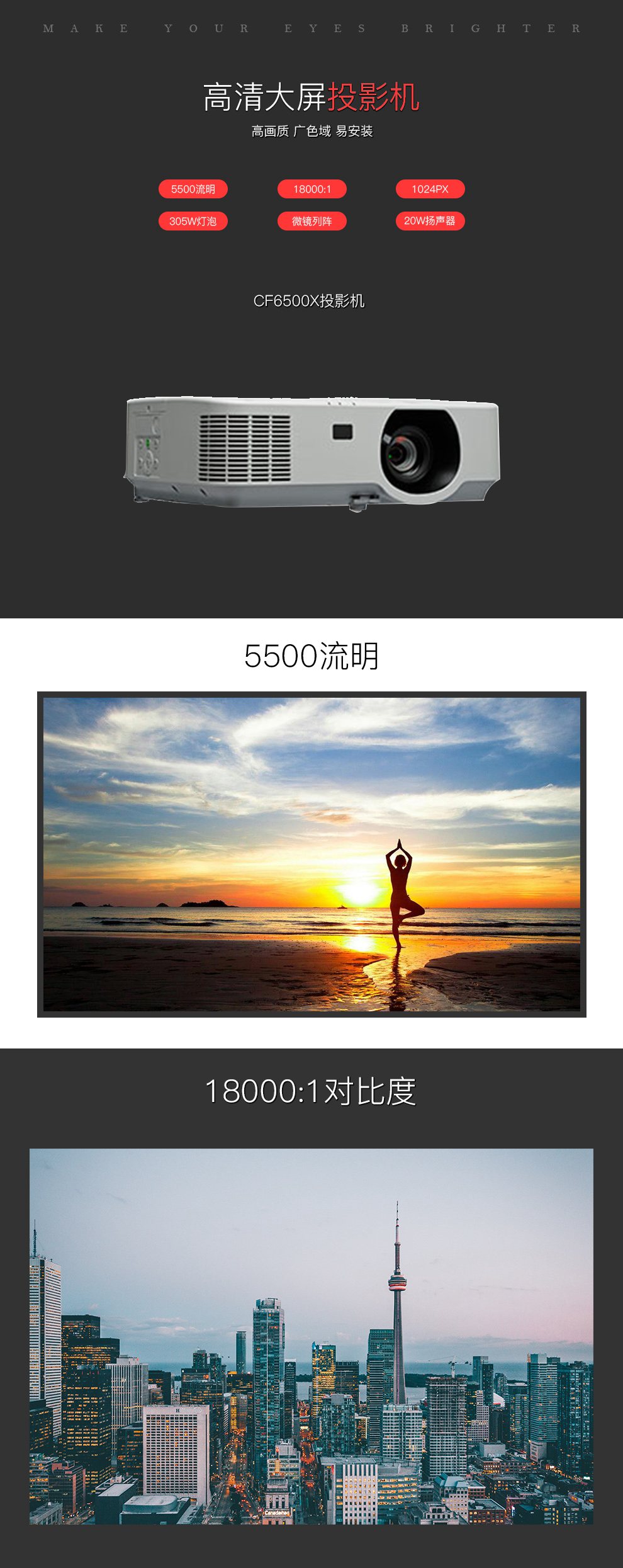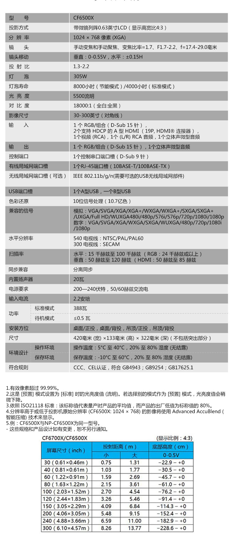 商品名称:NEC NP-CF6500X 投影仪 投影机办公 标清5500流明 HDMI 1.7倍变焦 镜头位移 官方标配