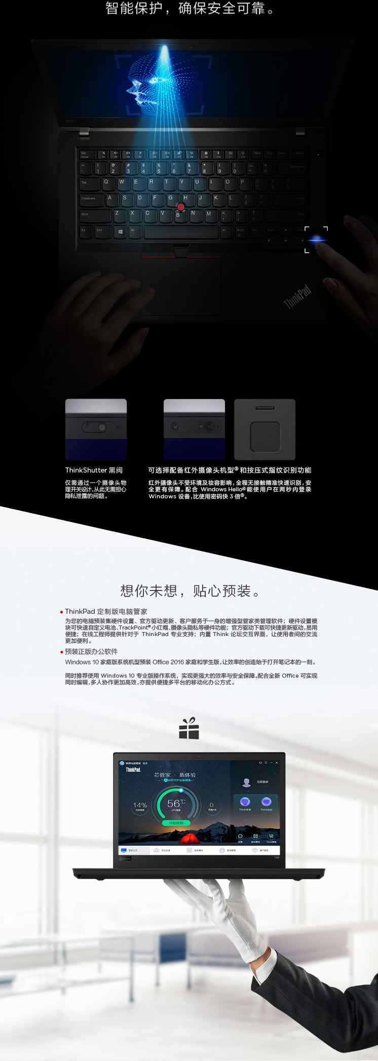 联想(ThinkPad)T480s-20L7002XCD笔记本电脑 (i7-8550U/8GB/256GB/2G独显/14"FHD LED/Win10家庭版/1年保修)