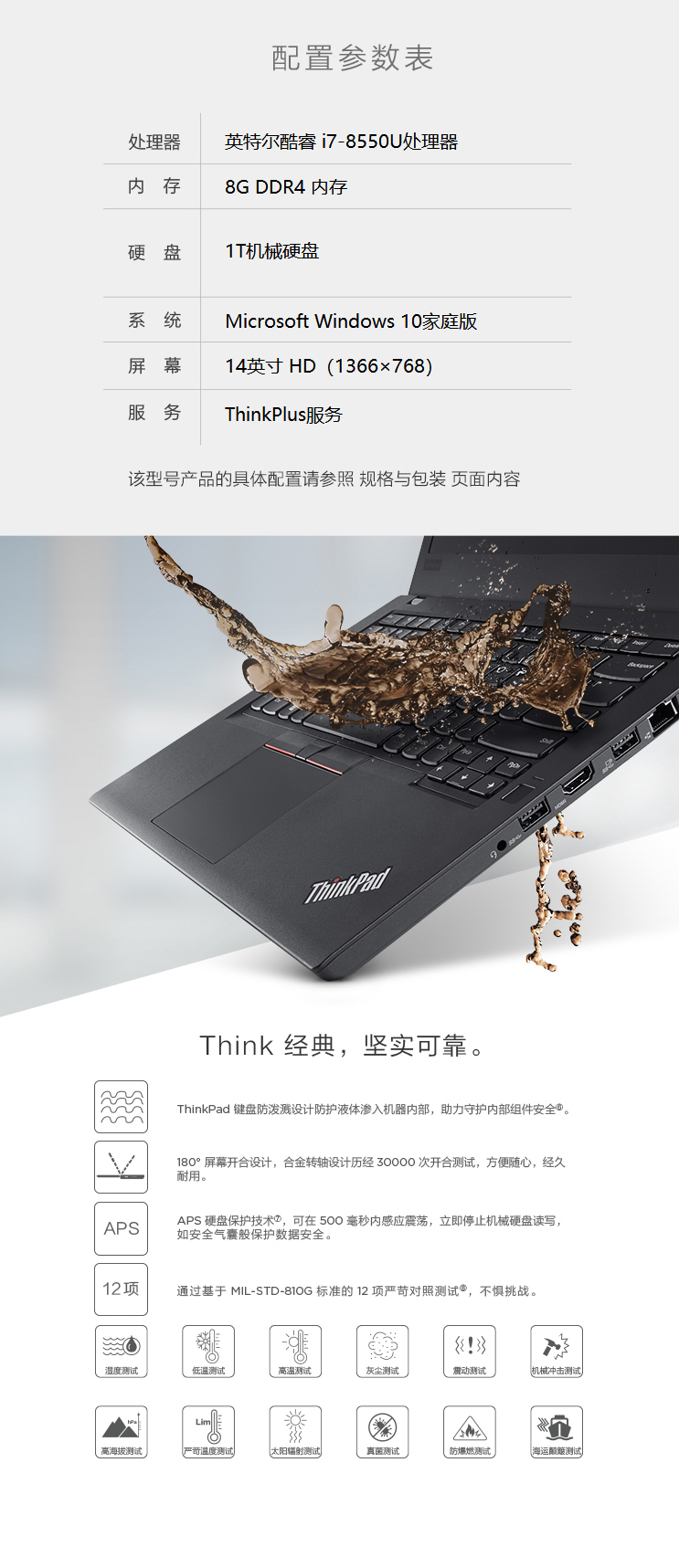 商品名称:联想(ThinkPad)T480s-20L7002XCD笔记本电脑 (i7-8550U/8GB/256GB/2G独显/14"FHD LED/Win10家庭版/1年保修)