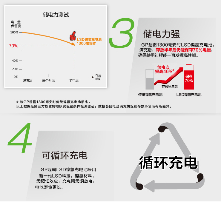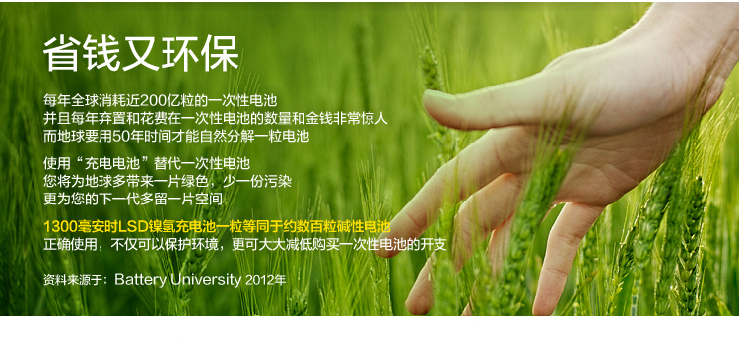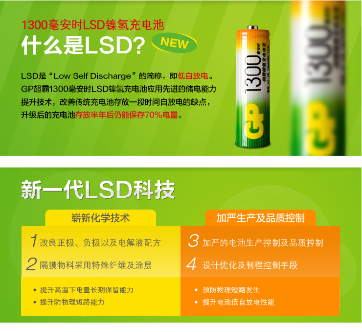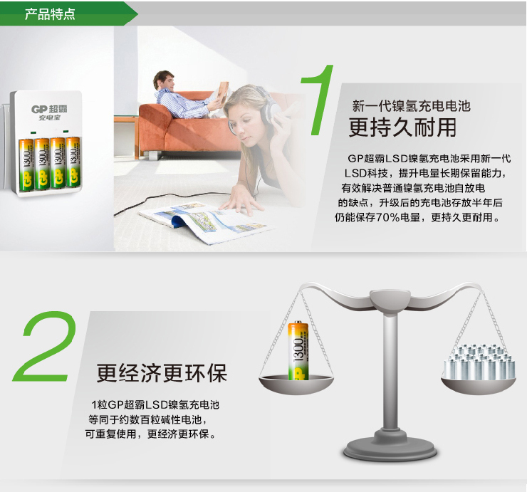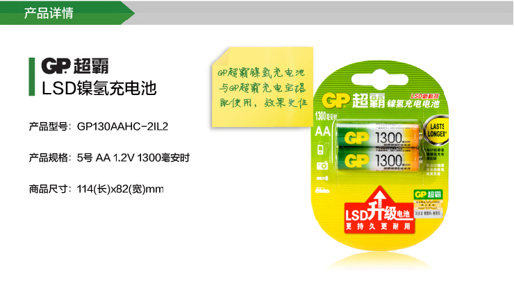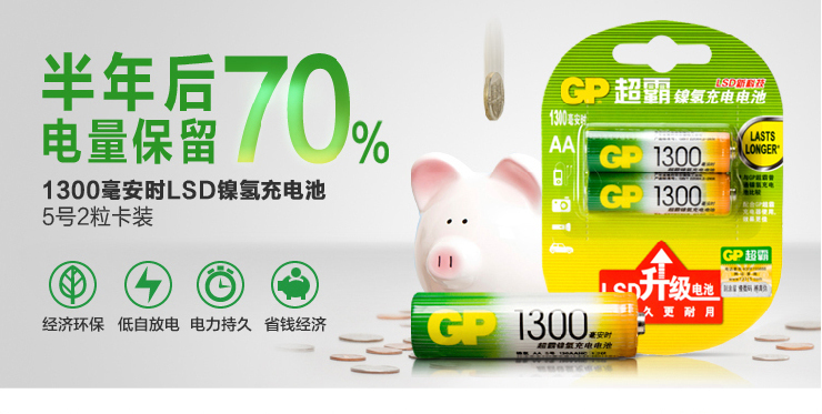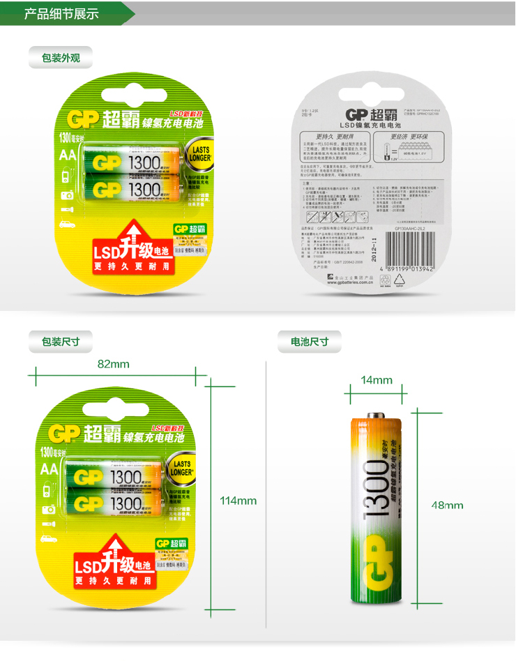 商品名称:超霸(GP)1300MAh 5号充电电池