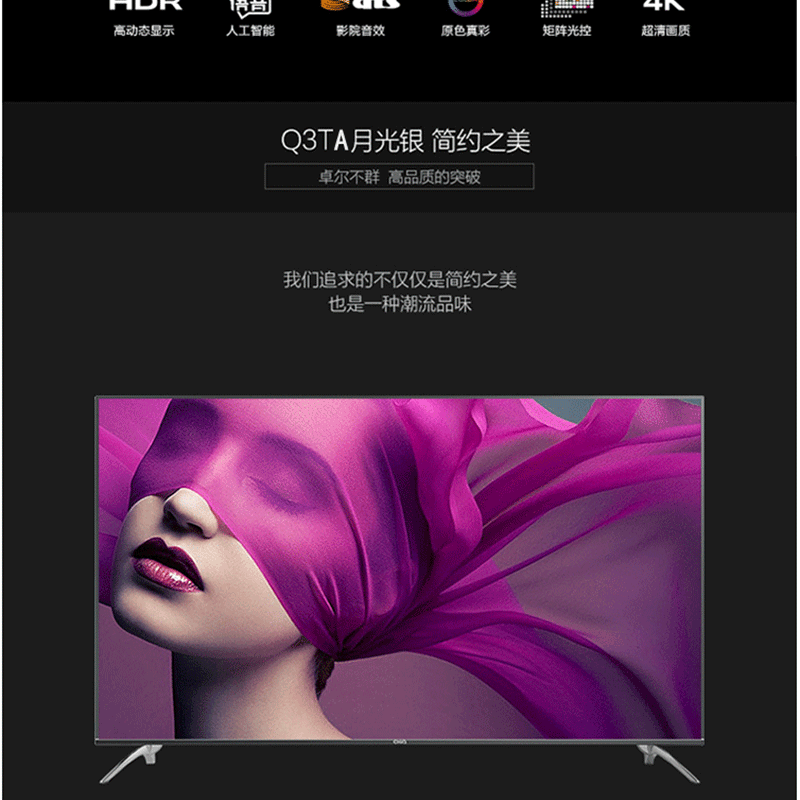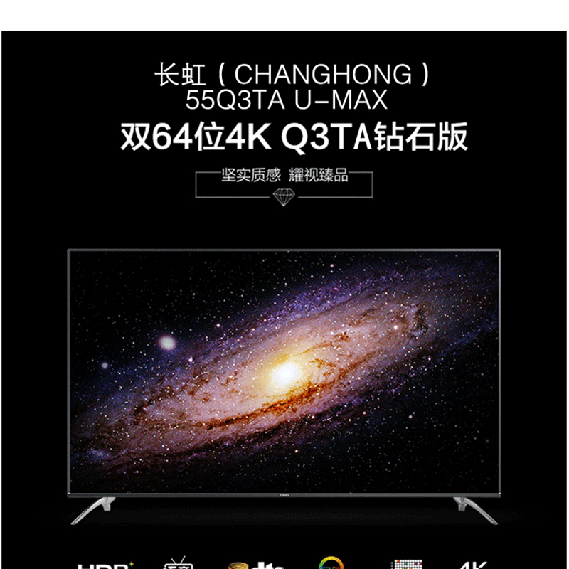 商品名称:长虹(CHANGHONG) 55Q3TA U-MAX影院系统 HDR 超高清4K智能LED平板液晶电视55英寸(星际灰)