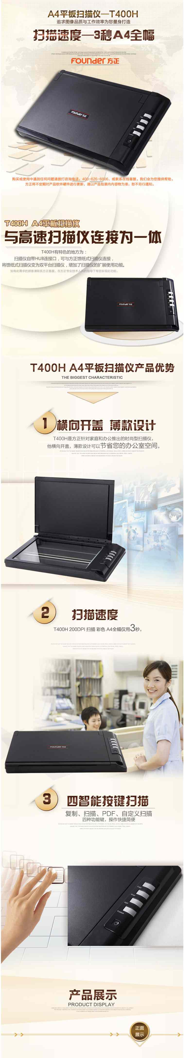 商品名称:方正(Founder)T400H扫描仪A4平板彩色快速