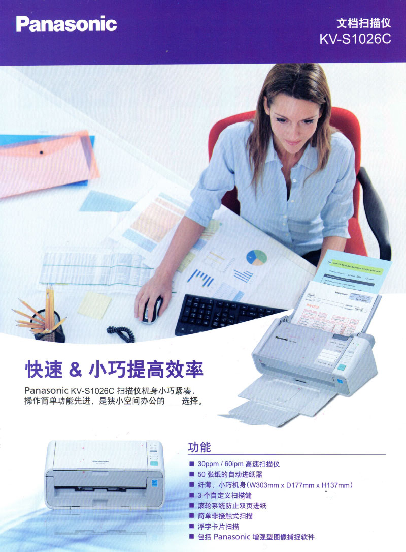 - 商品名称:松下 Kv-S1026c 扫描仪 高速高清双面自动扫描仪文件图片证件扫描仪