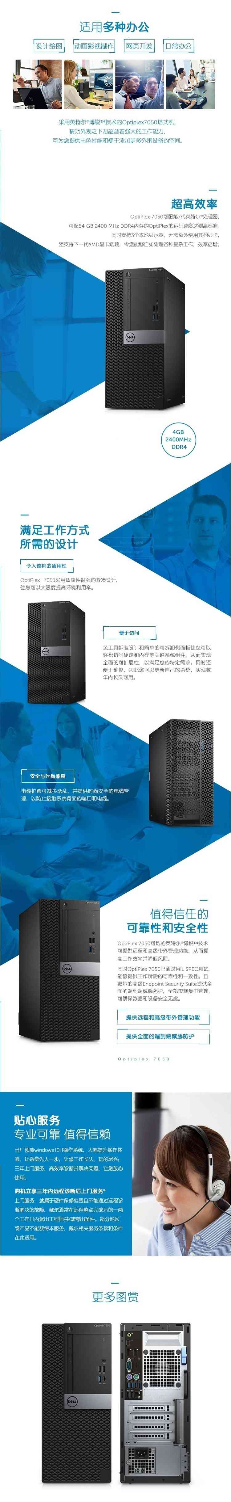 戴尔(DELL)OptiPlex 7050 I5-7500/4GB/1TB/DVDRW/Win10 Home/键鼠/3年上门服务/E2417H 23.8寸