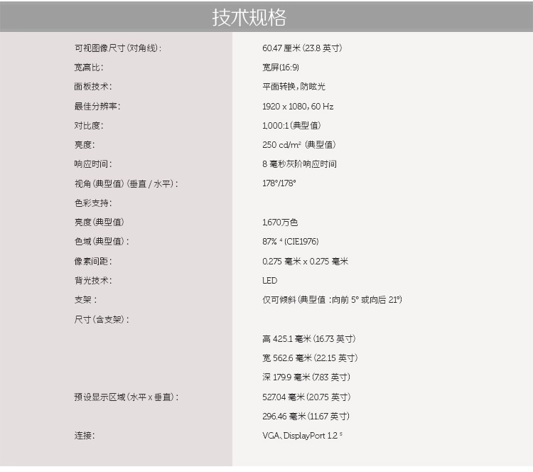 戴尔(DELL) E2417H 23.8寸 1920*1080 E-IPS显示器