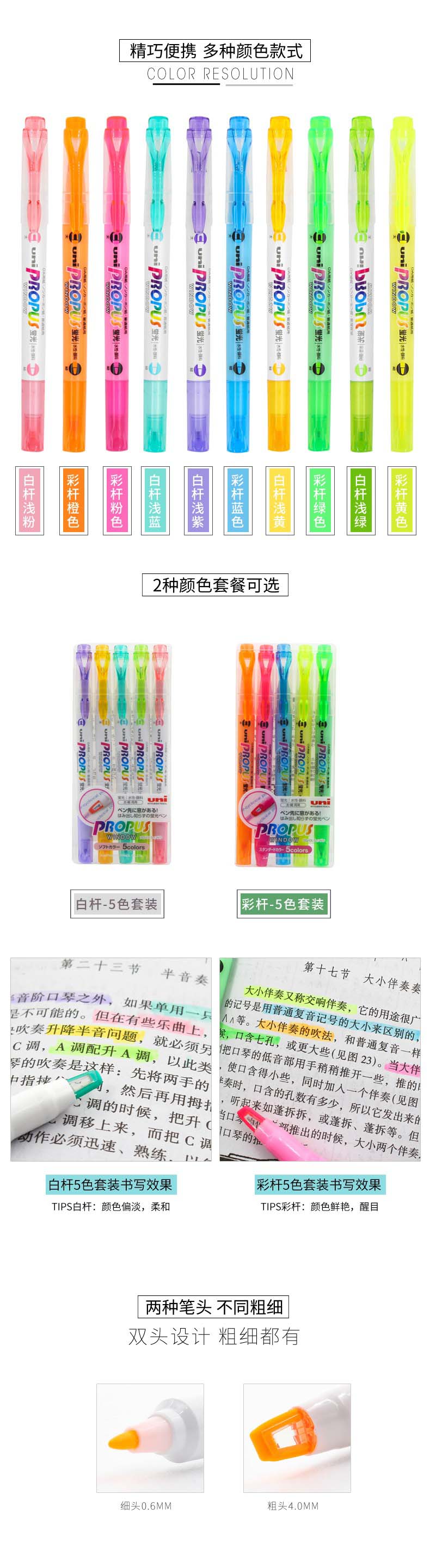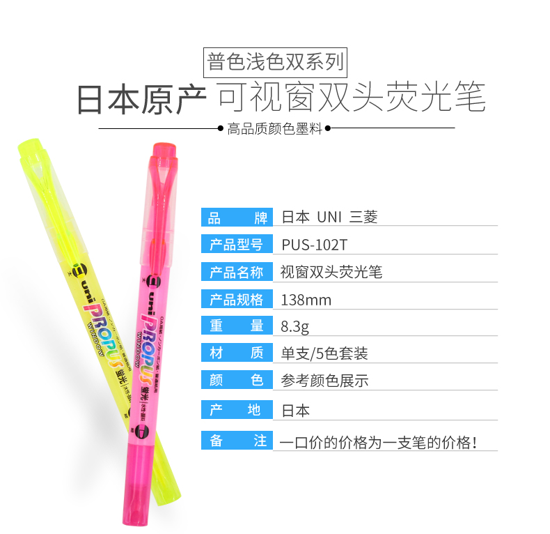 商品名称:三菱(uni) PUS-102T 双头荧光笔(彩杆-蓝色)