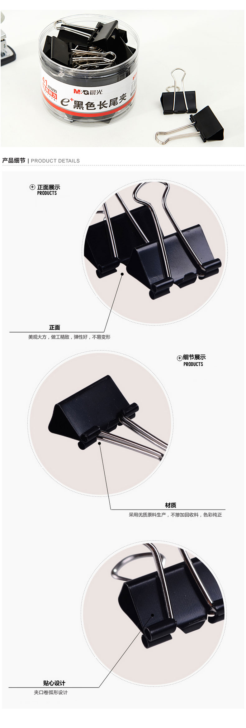 - 商品名称:晨光(M&G) ABS92737 黑色长尾夹 15mm (60枚/筒)
