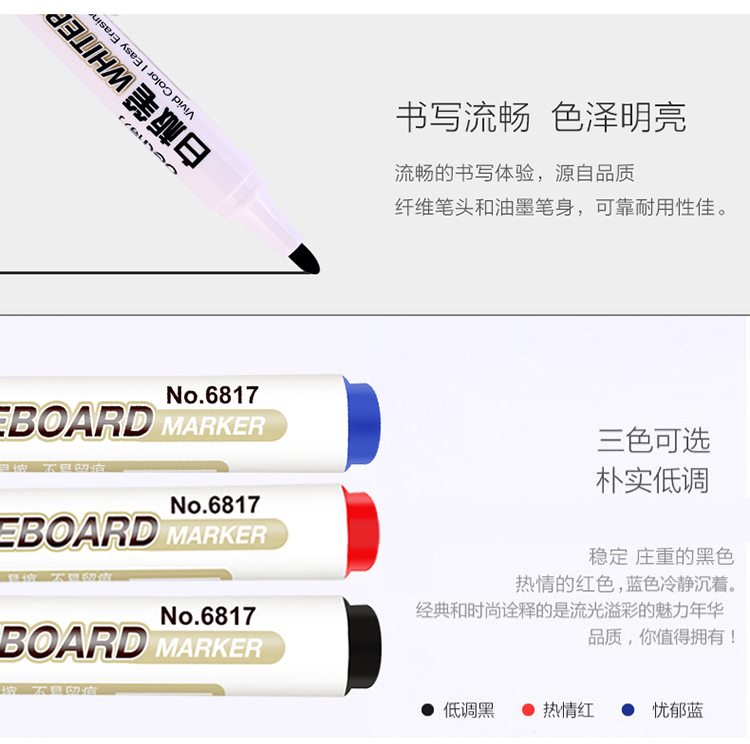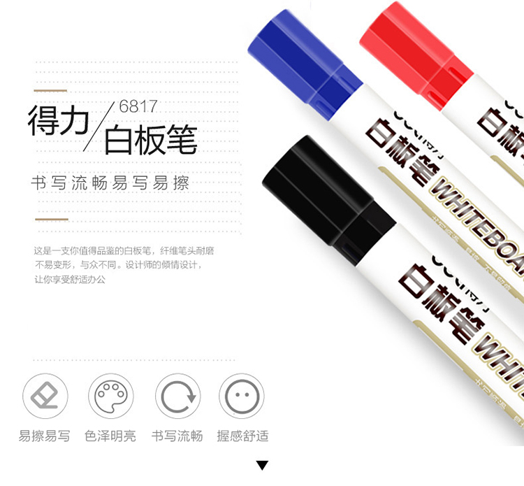 商品名称:得力(deli) 6817 可擦白板笔 10支/盒 蓝色