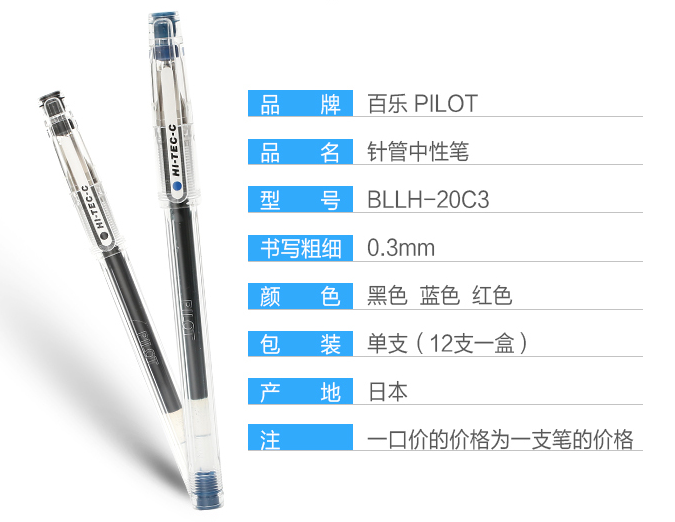 商品名称:百乐(PILOP)BLLH-20C3 签字笔 0.3mm 黑 12支/盒